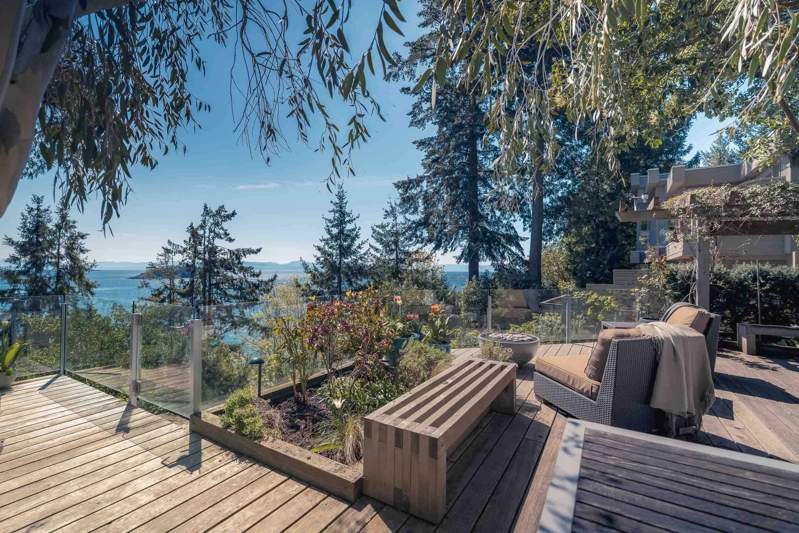 A rare offering on the Sunshine Coast—this architecturally refined waterfront estate captures sweeping views of the Georgia Strait & Trail Islands. Meticulously reimagined, the residence blends modern West Coast elegance with timeless natural elements—featuring seamless indoor-outdoor living with folding glass NanaWalls opening to the ocean views, old-growth fir floors, heated spa-style bathroom, and a wood-burning fireplace. Step onto the expansive ocean-view deck with hot tub, or retreat to the elevated artist studio perched above a new garage, boasting its own private balcony and panoramic vistas. Beach access and a charming seaside bunkie complete this truly exceptional coastal sanctuary.