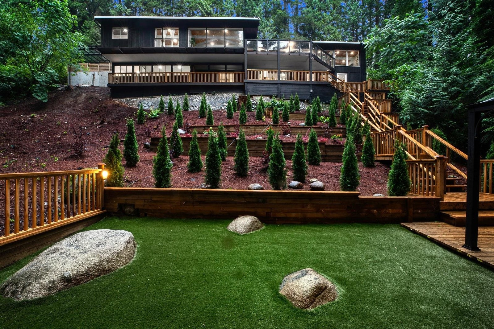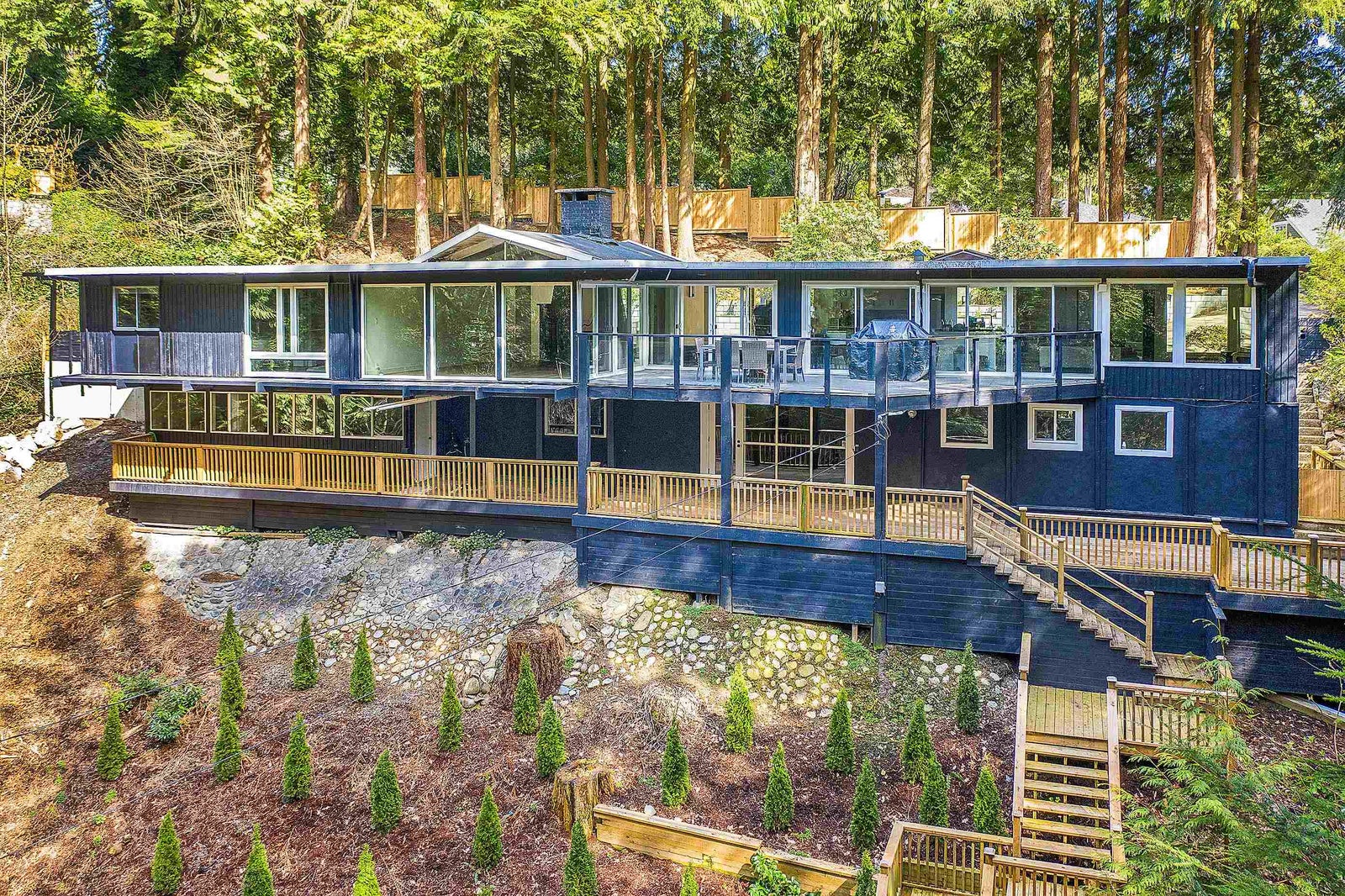 This beautifully renovated 5 bed, 4 bath home in the prestigious British Properties showcases picturesque windows framing garden, forest and mountain views. The main floor features a stunning vaulted post and beam living room with a grand wood-burning fireplace, an elegant dining room, gourmet kitchen, bar and a warm, inviting family room—all flowing onto a large deck ideal for indoor/outdoor living. Also on this level are 3 bedrooms and 2 stylish designer bathrooms. The lower floor offers a spacious rec/media room, office or guest bedroom, full bath as well as a 2 bedroom suite with separate entrance and patio. Tiered gardens, custom stairs and a tranquil gazebo complete this serene setting. Open House Sunday September 14th 2:00pm - 4:00pm.