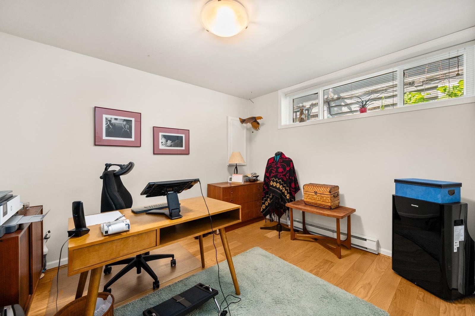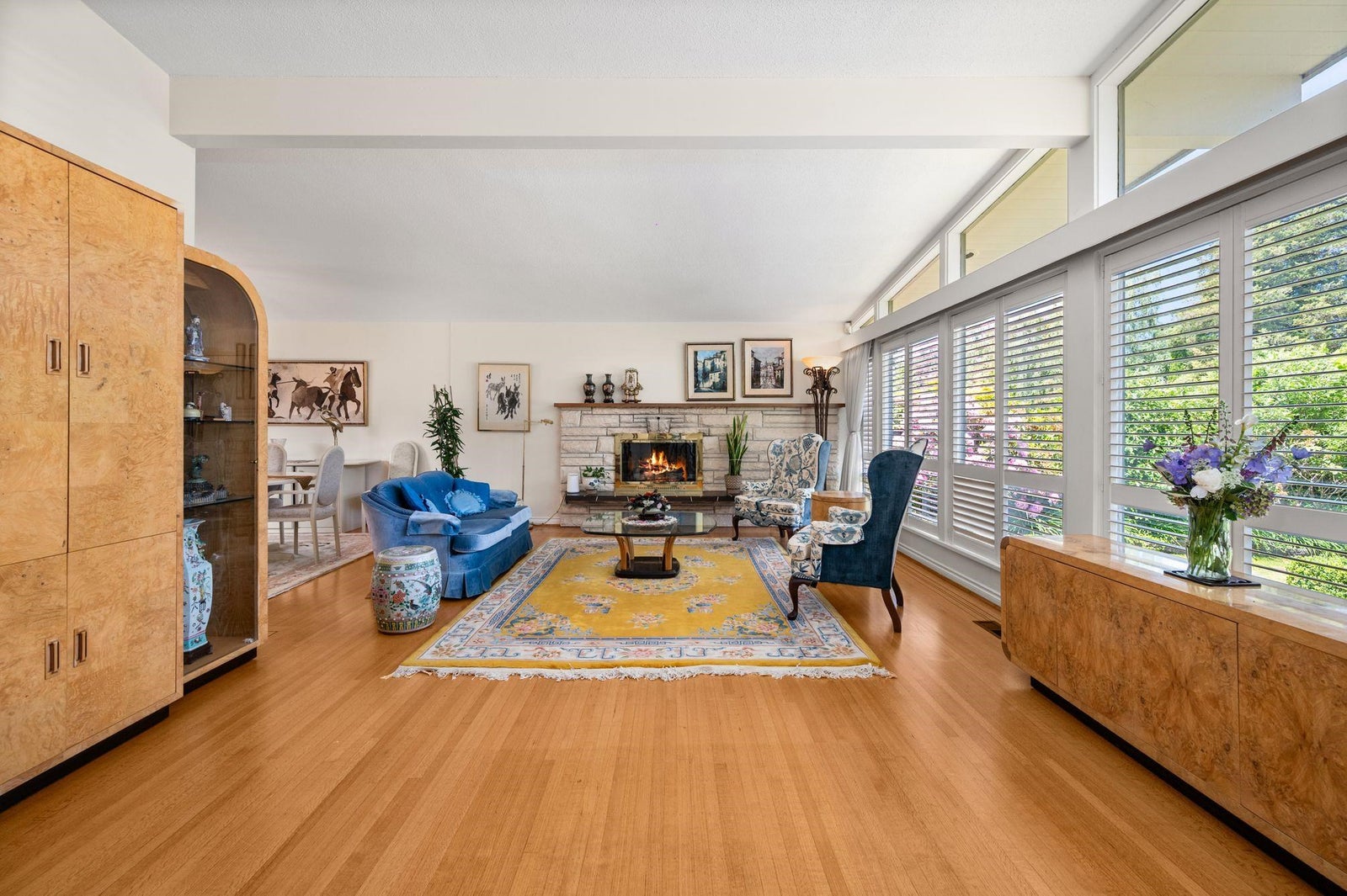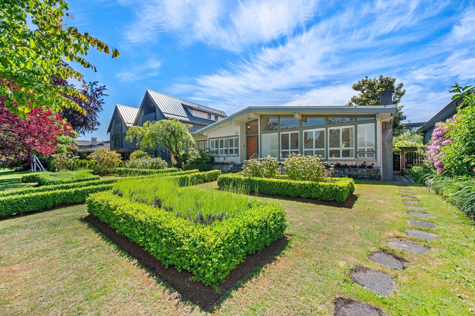 Highly desirable, Mid-Century Modern family home on 62' x 125' extra large lot shows off the classic clean lines, geometric design & large floor-to-ceiling windows that make this style so popular. Natural light floods the large living & dining rooms. Original, refinished HW floors are a delight. Sunny south facing patio is perfect for the summer barbecues. The beautiful, manicured gardens are peaceful & private. 4 bedrooms on the main give you plenty of space for the whole family. Downstairs features a modern 2 bedroom plus a nanny suite. Original staircase still in place so floors can easily be joined back together to make one home. Double car garage plus extra parking & storage. Excellent school catchment: Jamieson Elementary & Hamber Secondary