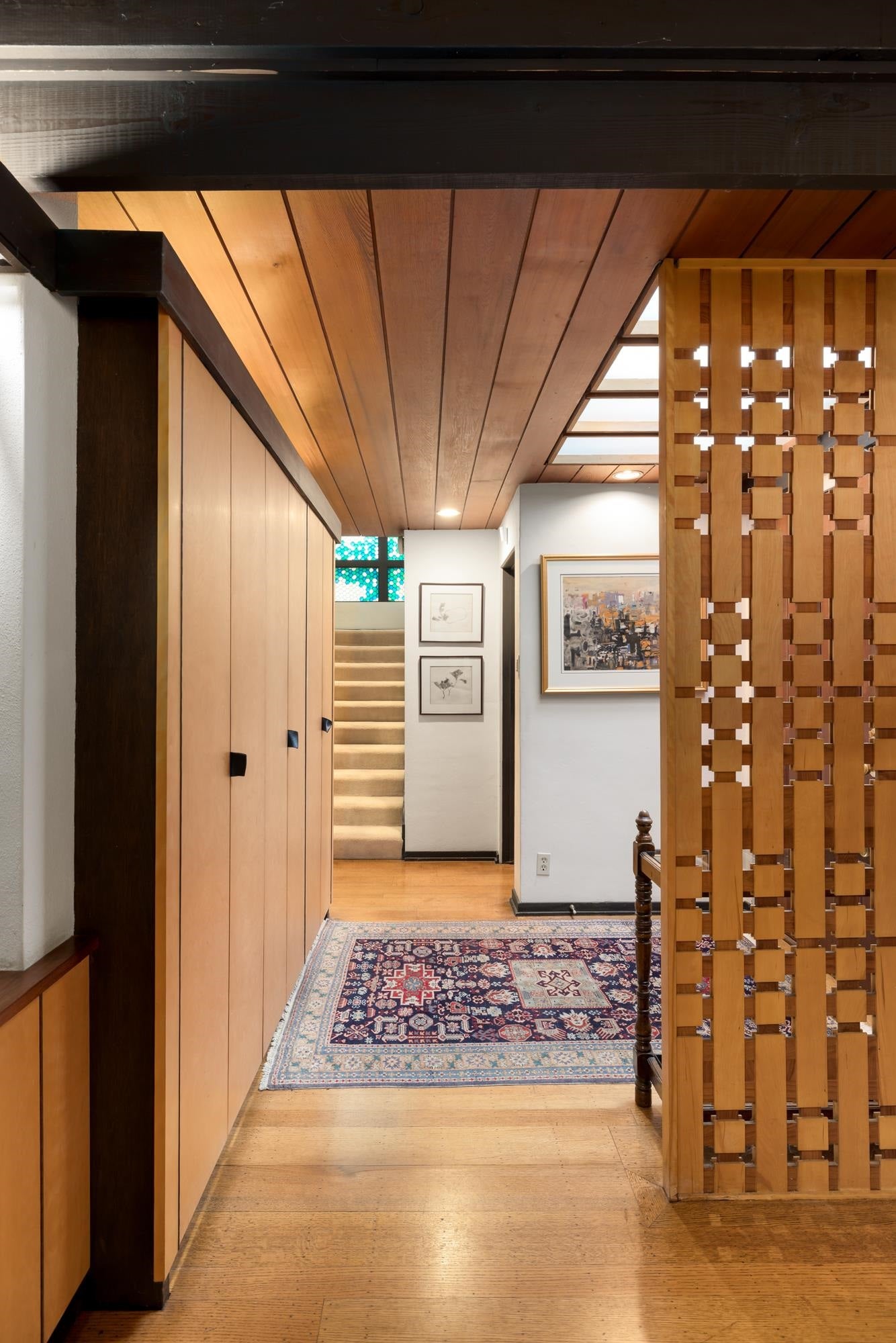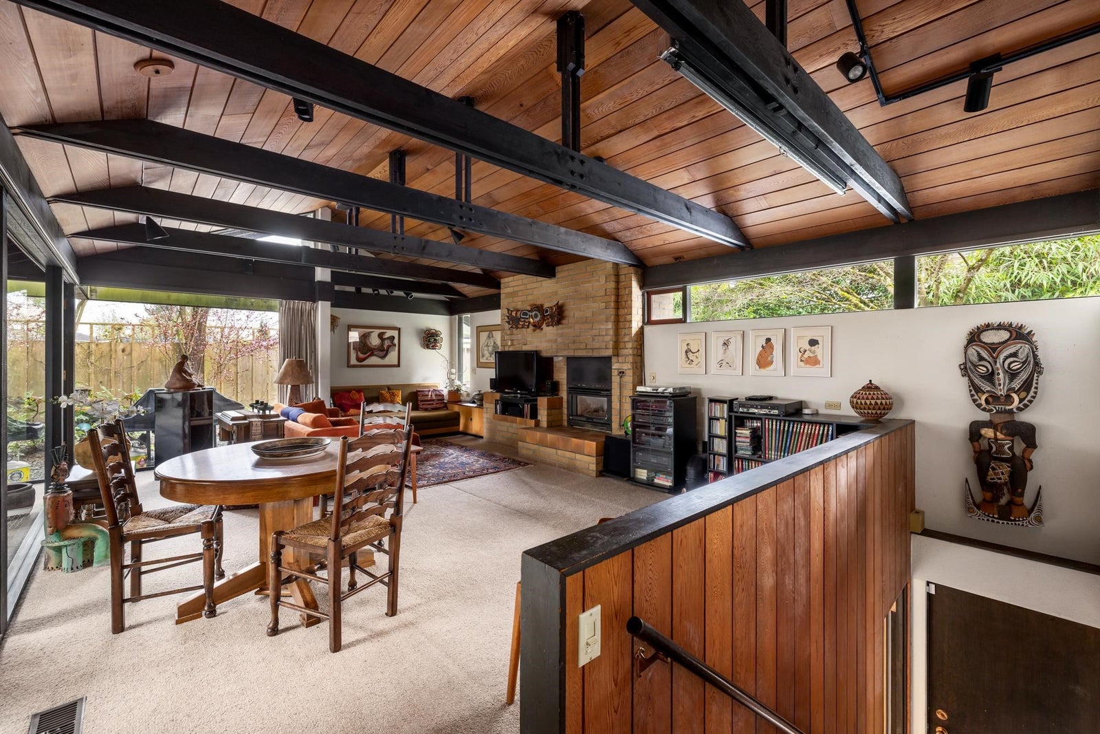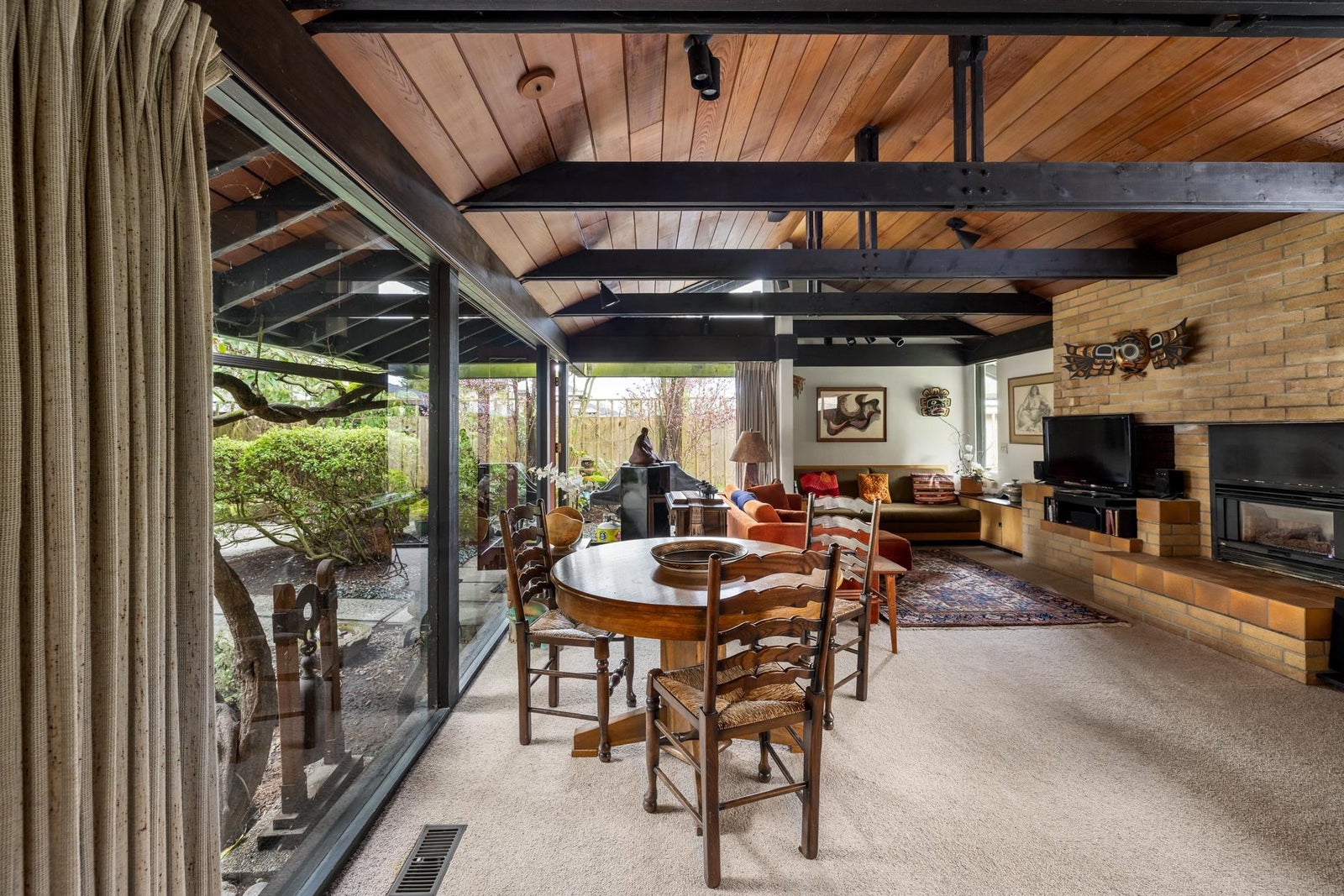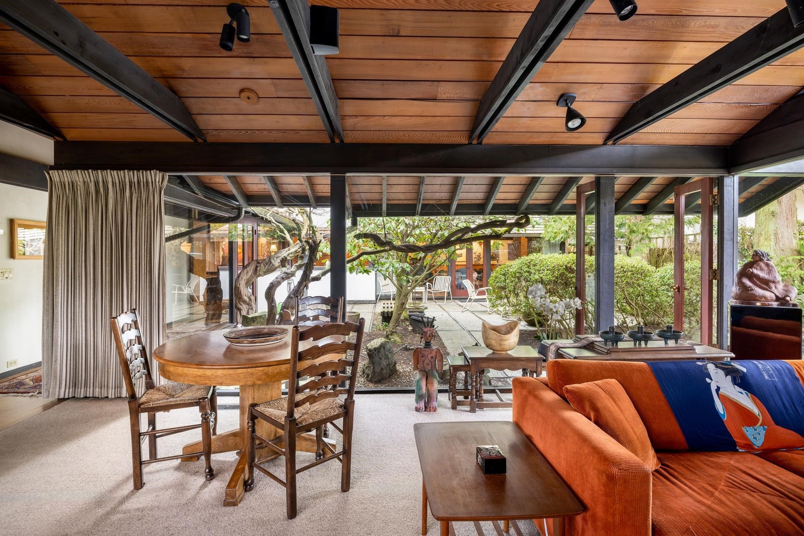 Dodek House by Ron Thom beautifully cared for by the original owners.AIBC Honour Award 1960.Massey Medal Winner & featured prominently in VAG Ron Thom Exhibition 1961. Heritage Designation in 2005.Japanese influenced simplicity mixed with dynamic geometry.Original L shaped design later expanded to a U shape surrounding a private,lush courtyard. Spectacular living room with soaring beamed ceilings anchored by a signature massive brick fireplace & wrapped in floor to ceiling windows opening out to sunny patio.Features include:Birch and teak built in furniture & cabinetry by Joseph Pliss, stain glass windows by Brian Baxter, custom light fixtures ,“egg crate” staircase window, concentrically arranged cedar bedroom ceilings.Kitchen by Hollingsworth 2001 & upstairs bathrooms by Ledingham 2007.