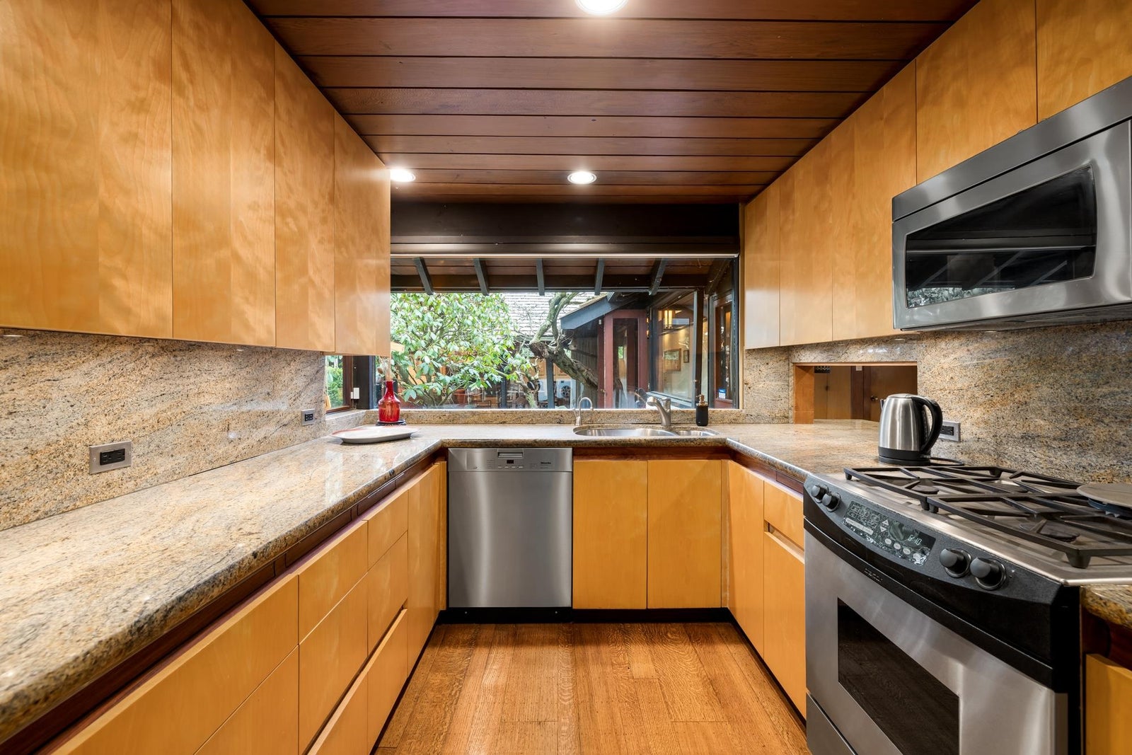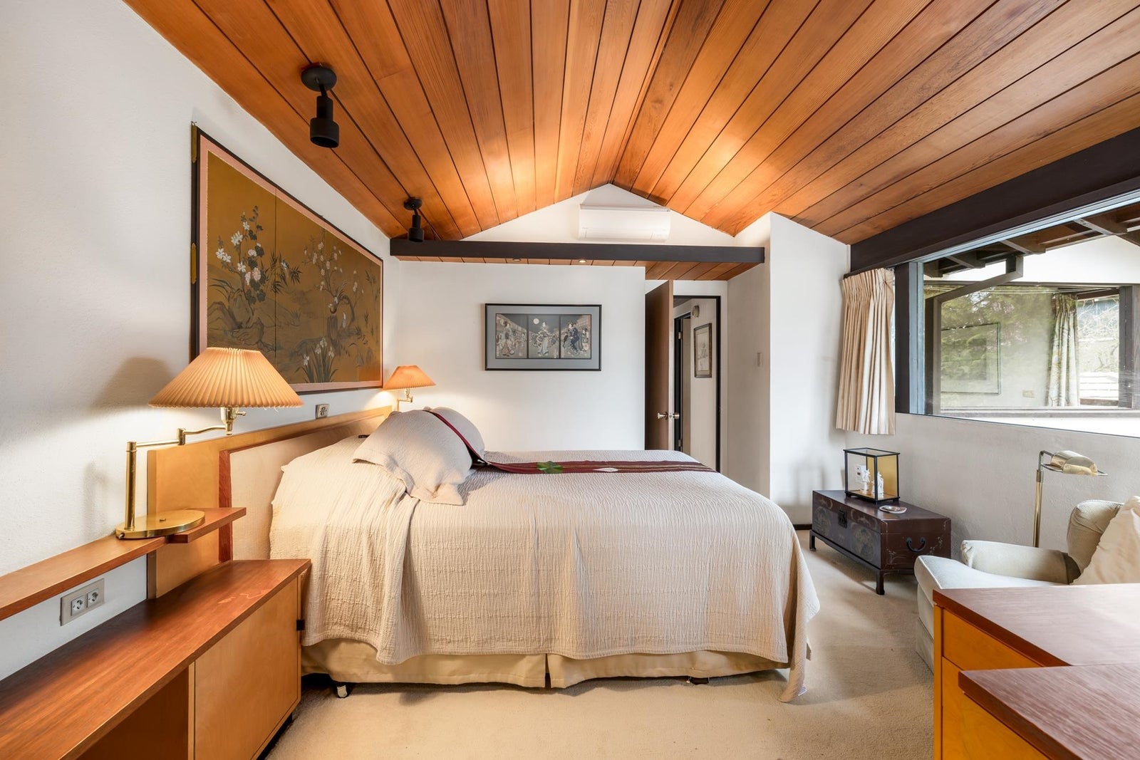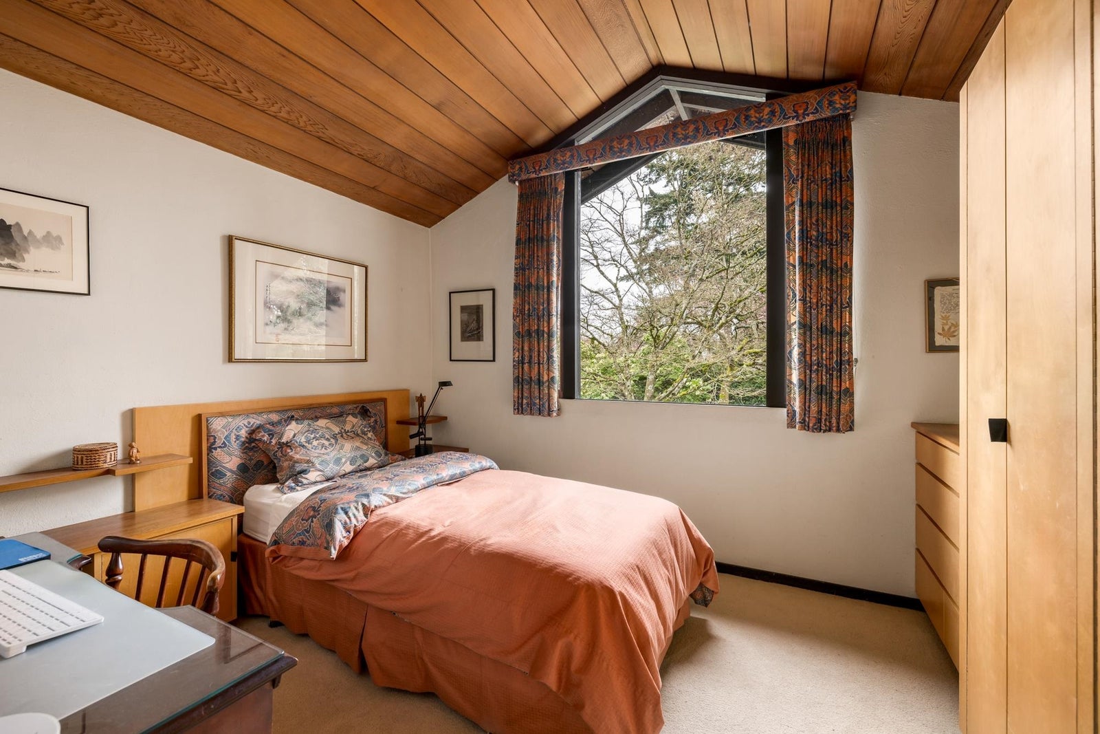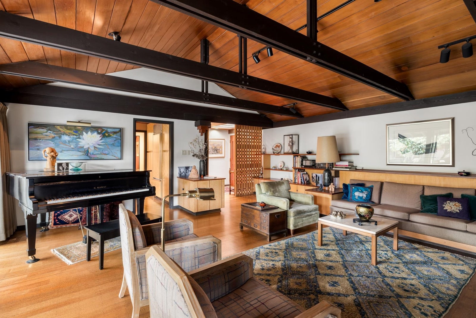 Dodek House by Ron Thom beautifully cared for by the original owners.AIBC Honour Award 1960.Massey Medal Winner & featured prominently in VAG Ron Thom Exhibition 1961. Heritage Designation in 2005.Japanese influenced simplicity mixed with dynamic geometry.Original L shaped design later expanded to a U shape surrounding a private,lush courtyard. Spectacular living room with soaring beamed ceilings anchored by a signature massive brick fireplace & wrapped in floor to ceiling windows opening out to sunny patio.Features include:Birch and teak built in furniture & cabinetry by Joseph Pliss, stain glass windows by Brian Baxter, custom light fixtures ,“egg crate” staircase window, concentrically arranged cedar bedroom ceilings.Kitchen by Hollingsworth 2001 & upstairs bathrooms by Ledingham 2007.