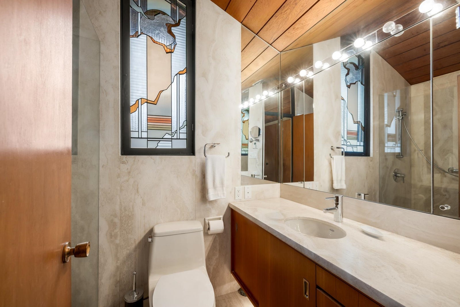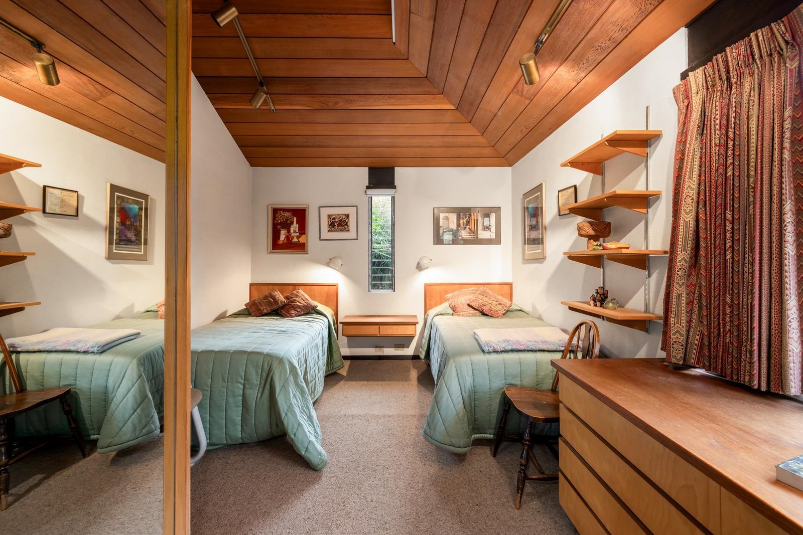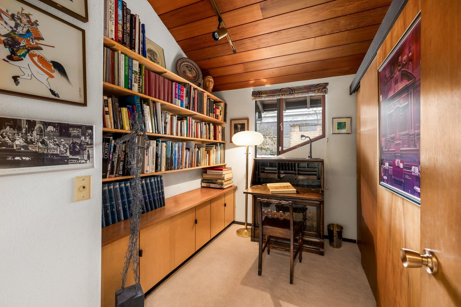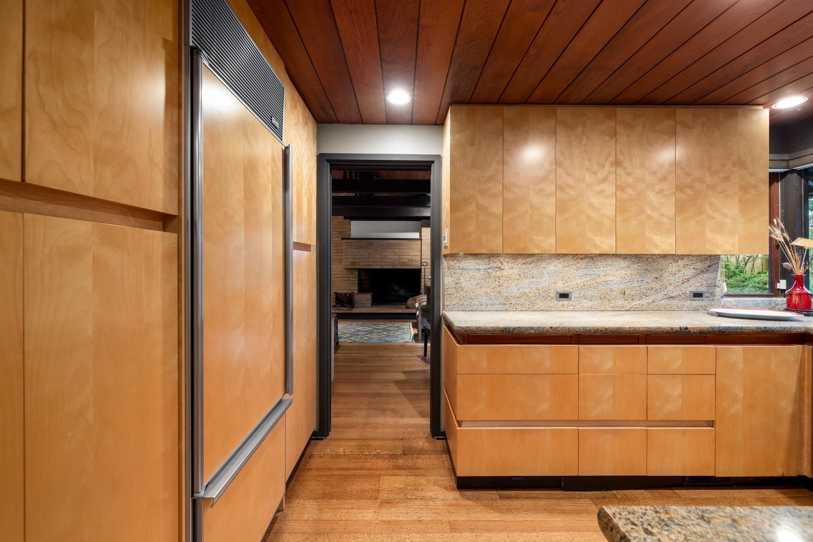 Dodek House by Ron Thom beautifully cared for by the original owners.AIBC Honour Award 1960.Massey Medal Winner & featured prominently in VAG Ron Thom Exhibition 1961. Heritage Designation in 2005.Japanese influenced simplicity mixed with dynamic geometry.Original L shaped design later expanded to a U shape surrounding a private,lush courtyard. Spectacular living room with soaring beamed ceilings anchored by a signature massive brick fireplace & wrapped in floor to ceiling windows opening out to sunny patio.Features include:Birch and teak built in furniture & cabinetry by Joseph Pliss, stain glass windows by Brian Baxter, custom light fixtures ,“egg crate” staircase window, concentrically arranged cedar bedroom ceilings.Kitchen by Hollingsworth 2001 & upstairs bathrooms by Ledingham 2007.