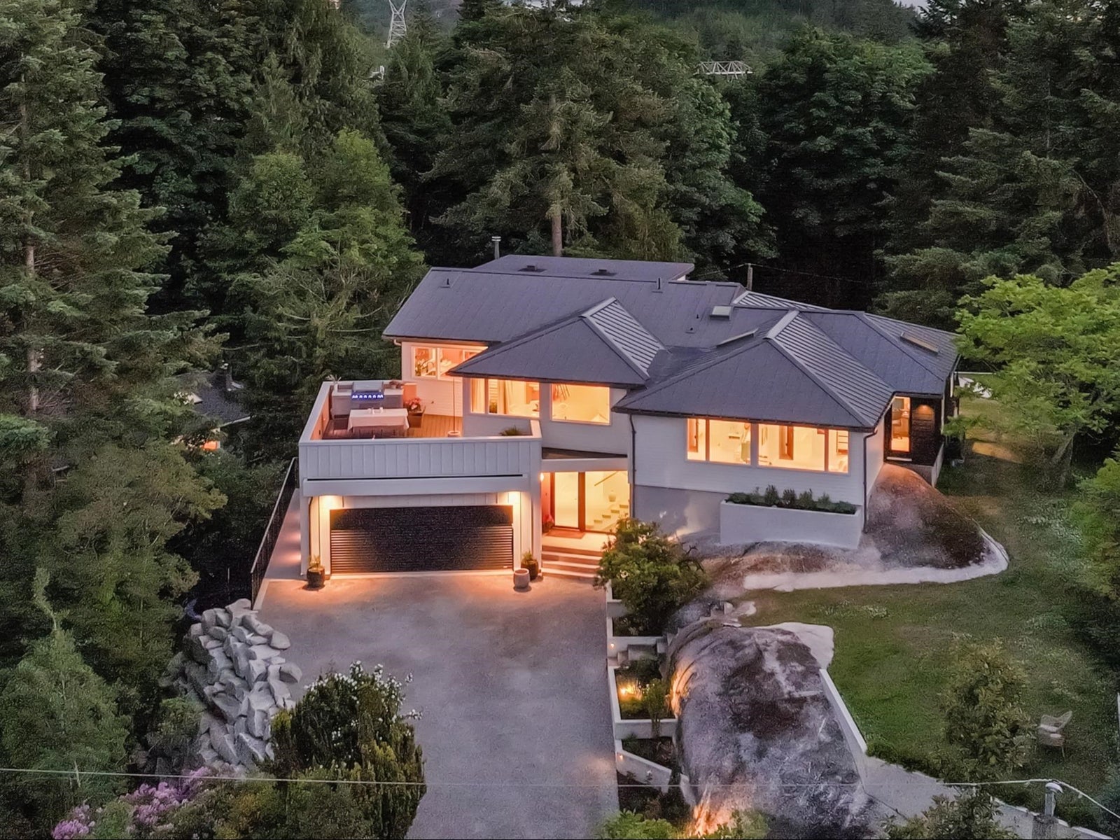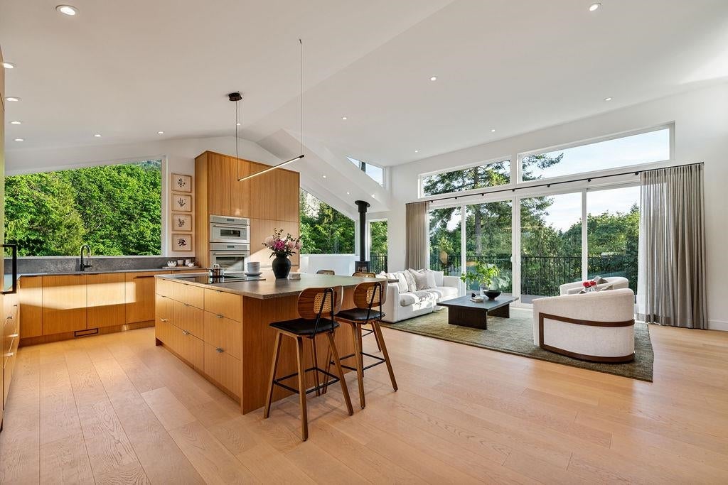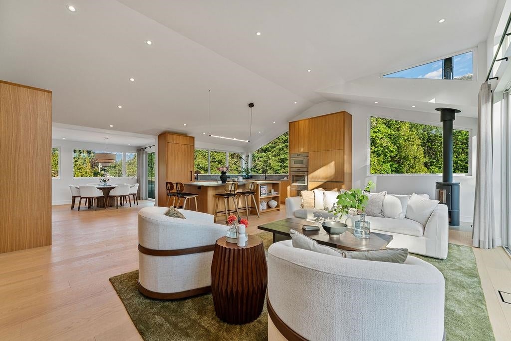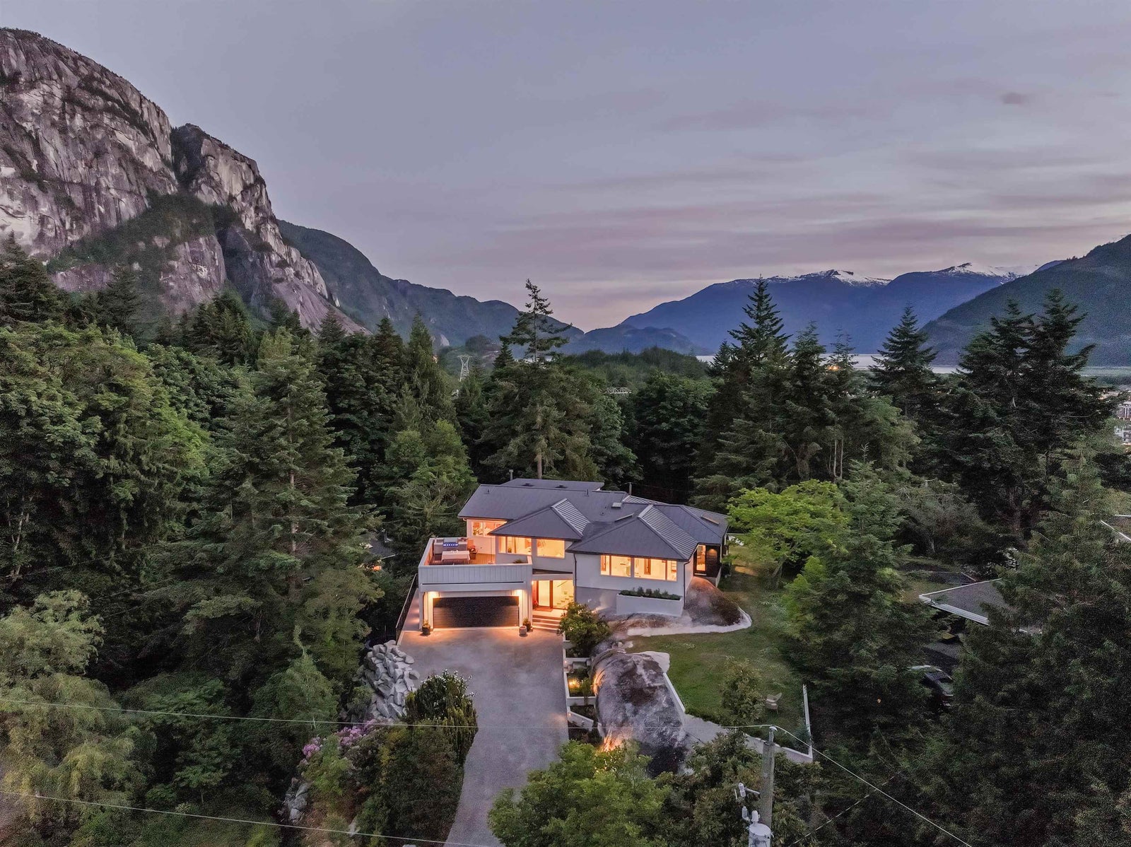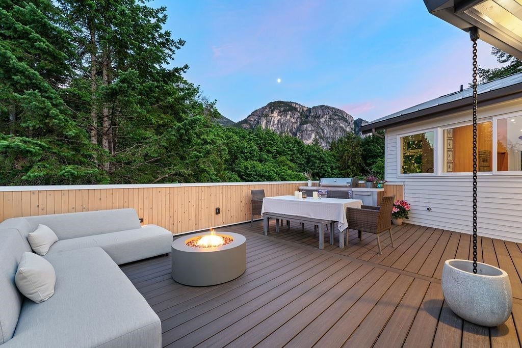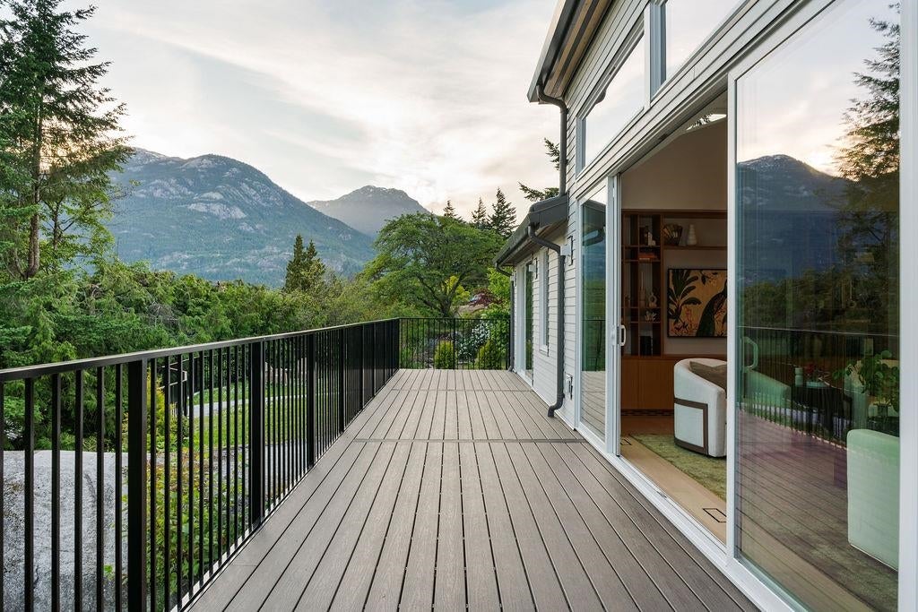 Welcome home to one of Squamish’s most iconic properties: 38243 Vista is a luxury tree fort perched on a cliff’s edge. Sitting on half an acre of exceptional land in the beautiful and exclusive neighbourhood of Northridge, with minimal through-traffic and surrounded by park and designated green space, this home was substantially rebuilt and added to in 2023 under the guidance of Skladan Architecture and AK Design. Elevated on a corner lot, the estate offers striking natural beauty in every direction, enjoys protected view corridors, and has no neighbours on 3 sides - extraordinarily valuable attributes in one of Canada’s fastest growing communities. The residence is expertly built into solid granite, architecturally stunning, and thoughtfully designed, with not a single detail overlooked.