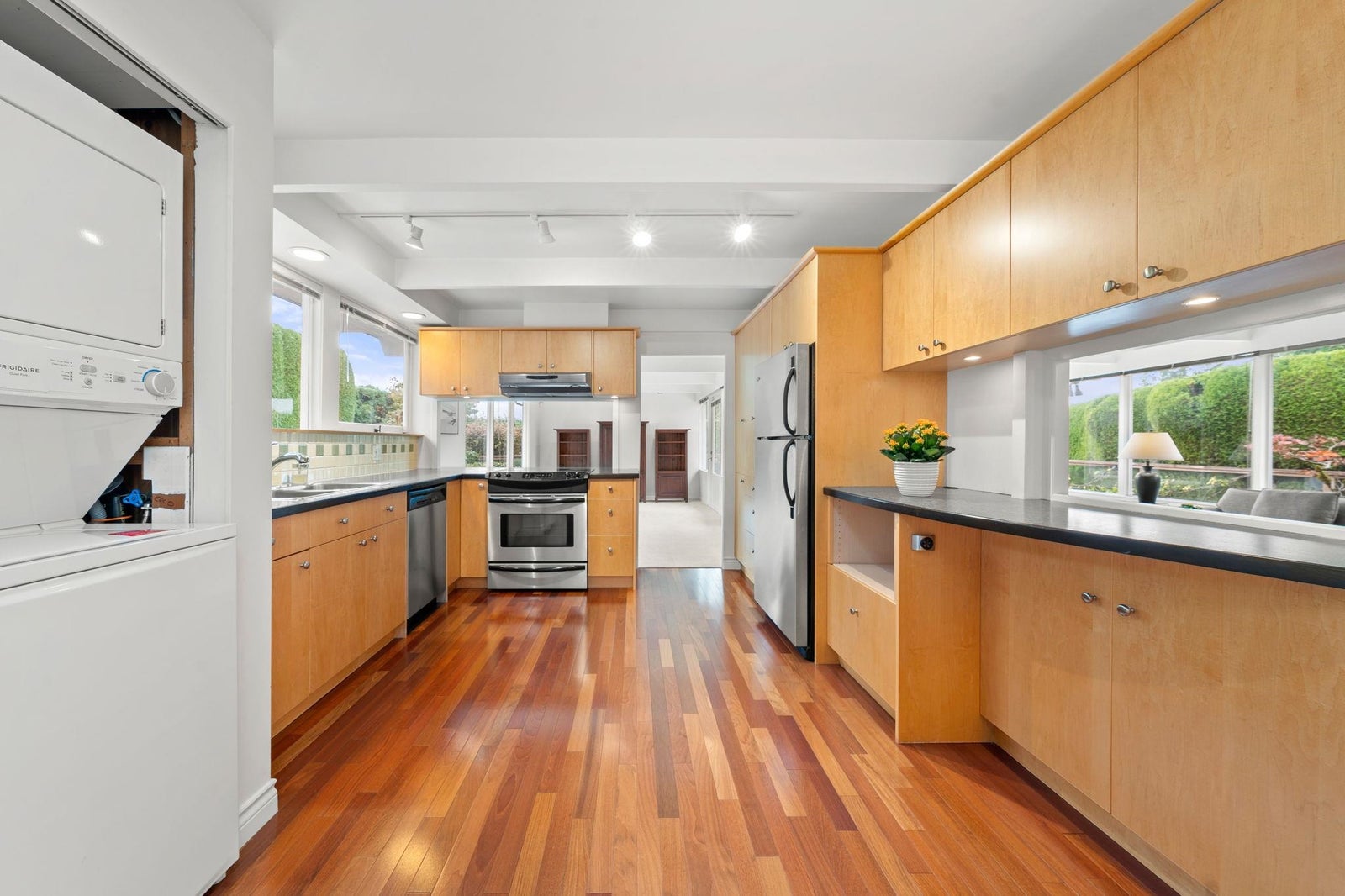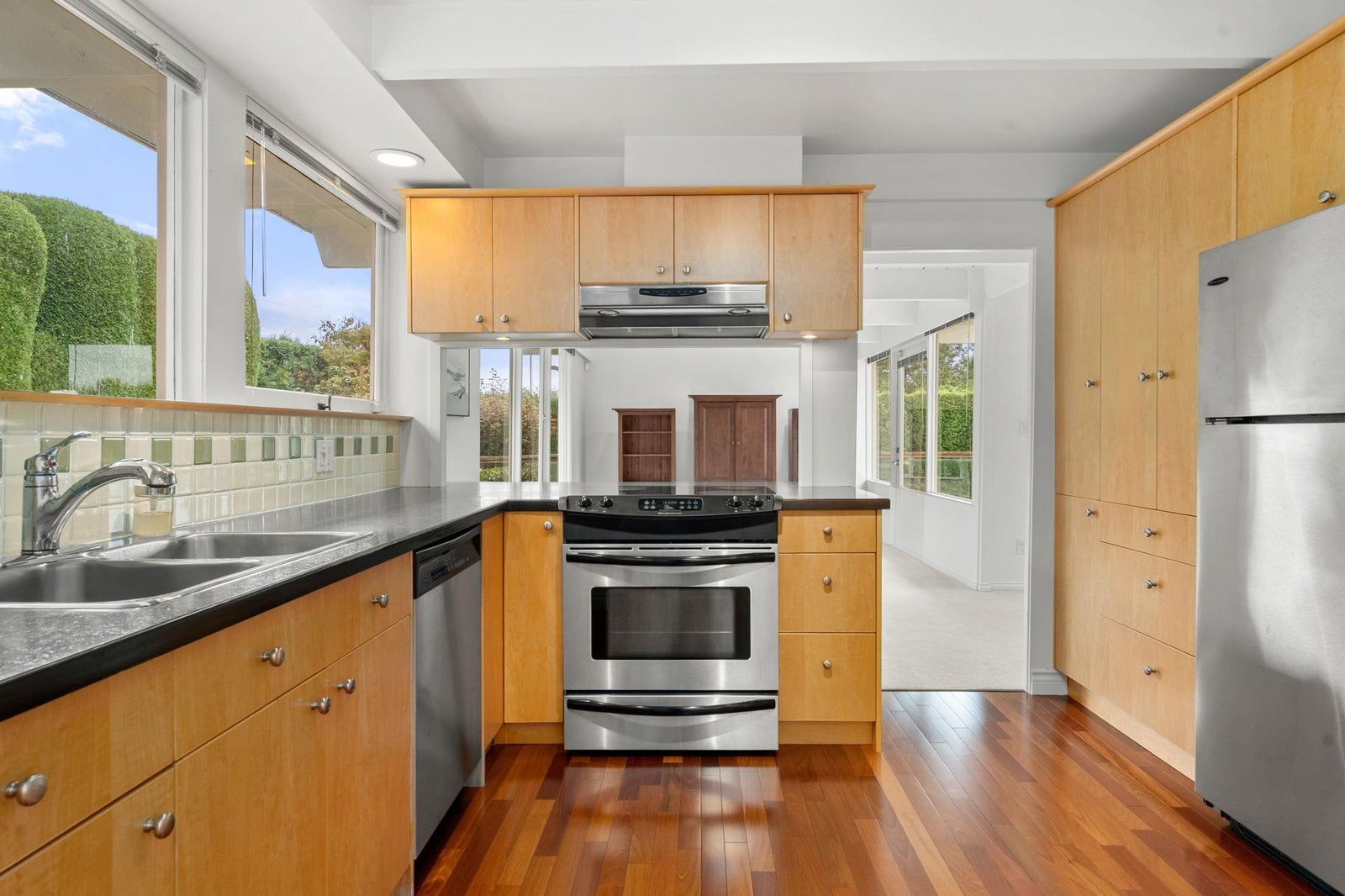 Fall in love with this Bob Lewis Mid Century Modern home, nestled on a quiet, flat, south-facing lot in Canyon Heights! A true rancher with no stairs, yet plenty of space for everyone at over 2,000 sqft. The home has loads of special design qualities, including classic Post & Beam style, an original double-sided wood-burning fireplace and large picture windows. While all on one level, the home has space and privacy for all. The kitchen is large and overlooks the garden; the living and family rooms step out nicely to a massive 600+ sqft. southern deck; the 3 bedrooms are all tucked away on one side of the home, and the east wing features a rec room off to the side for the kids to play. Walking distance to Canyon Heights and Handsworth Schools, and close to all that North Van has to offer!