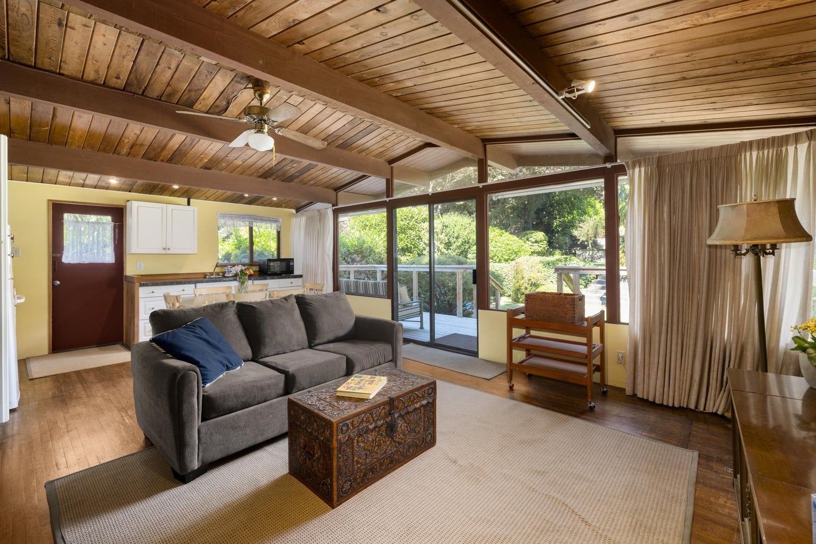 Excellent value in this transforming pocket of Eagle Harbour! This rancher w/ basement is a tasteful 3 bedroom family home with a functional lay out. The inviting foyer opens to the living area with a cosy gas fireplace. Large windows in the living room allow for plenty of natural light and sliders open up to the west facing patio. Large laundry/mud room to enter from outside. Spacious kitchen with gas stove opens to the eating and dining areas. Down the hall are 3 bedrooms, plenty of closets and a full bathroom. The ensuited primary bedroom features corner windows. Downstairs is a large rec room w/ full bath and access to the garage. A 2 bed (no closets) post & beam cabin adorns the lower property. Move in for the New Year! Have your agent set up a showing! *Some photos virtually staged.